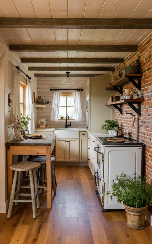 Perfect for those who love a cozy, rustic feel. This layout features a loft-style bedroom, a small but efficient kitchen, and an inviting living area with a fireplace. Add a wraparound porch to bring in that cottage charm.