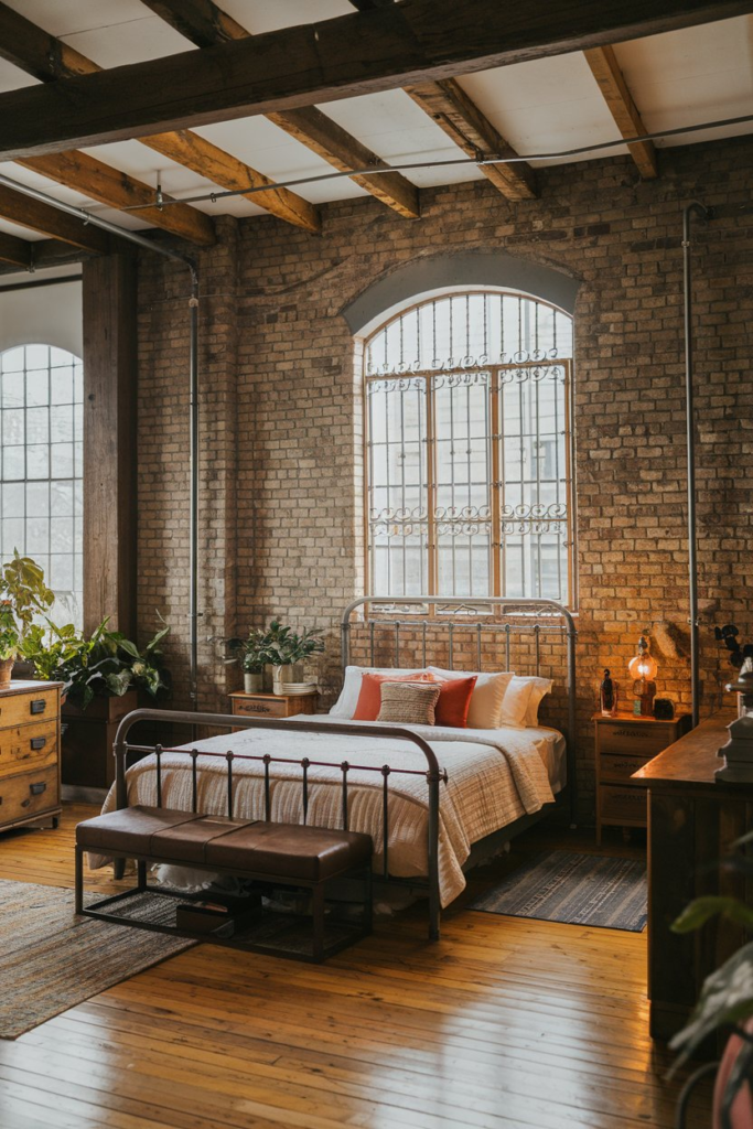 Inspired by urban spaces, this open-concept loft has exposed brick walls, high ceilings, and large windows. Keep furniture minimal but stylish with a suspended bedroom platform and a chic rooftop deck.