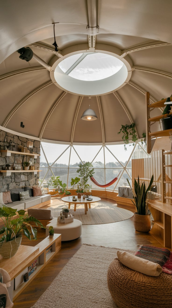 Build a circular, dome-style house with sci-fi interiors, automatic sliding doors, and a holographic entertainment area. This layout is great for those who love a space-age aesthetic.
